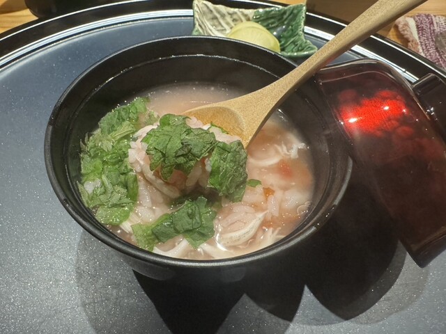 口当たりが滑らかな鱧と香ばしい焼き茄子、そこに潤菜と出汁が絡み合ってとっても美味しい〜