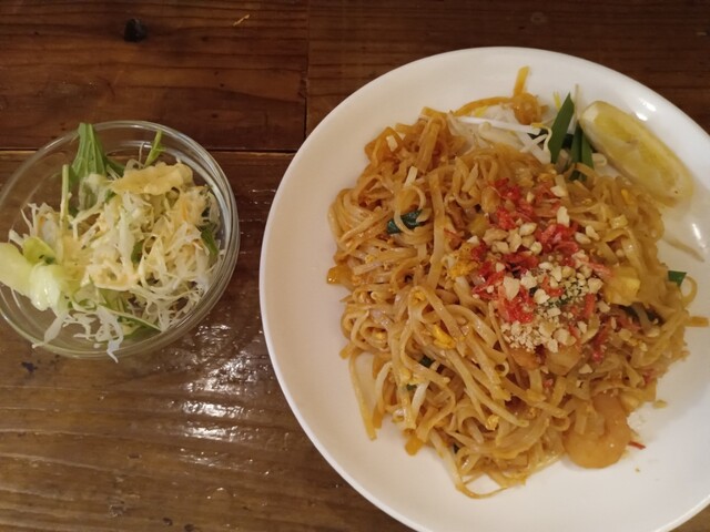 パッタイ(¥800)を+100円で大盛りにして注文。ランチはサラダがついてくるのが嬉しいです。