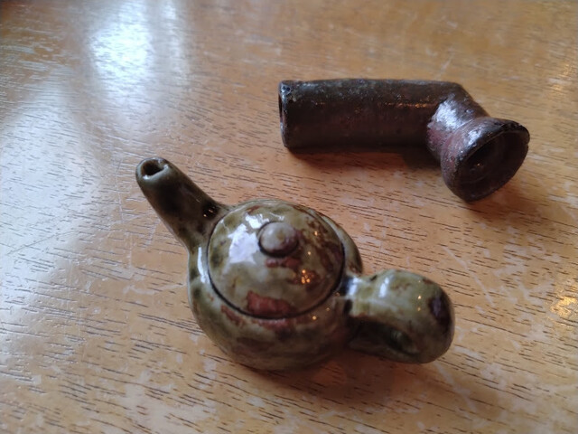 箸置きは土管と急須の焼き物。