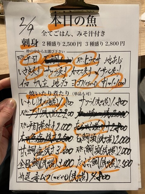 【だるま鯛】焼/煮 から選択できるみたいです。初め、金目鯛をいただこうと思っていたのですが品切れとのことで…「だるま鯛」って単語自体初めて聞きましたが、程よい脂身感のぶりっぶりの身が甘〜いタレに身をゆるし、これは煮付け正解でした◎(オススメしてくださったスタッフさんに感謝)
