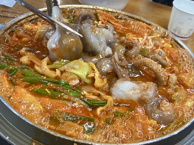 海外のレポは初です。ちゃんとできてるのだろうか…。記念すべき1店舗目は、大好きなタコ鍋屋さん、チャングネ!初めて出会ったのが約2年前、そこから3度目(韓国行く度)の訪問となります。つまり、もう虜、中毒者です笑。11:30頃訪問、店内半分弱の埋まりでした。