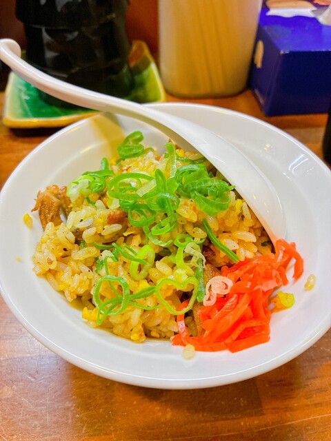 飲んだ後のラーメンです。ミニチャーハンのついたセットを注文。