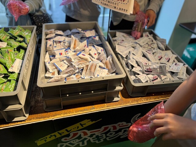 ありあけの工場直売店を訪問。家族でハーバーバイキングに挑戦しました。