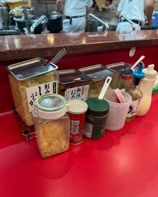緑色のおろしにんにくの他、豆板醤で味をピリッと味変するもよし️
