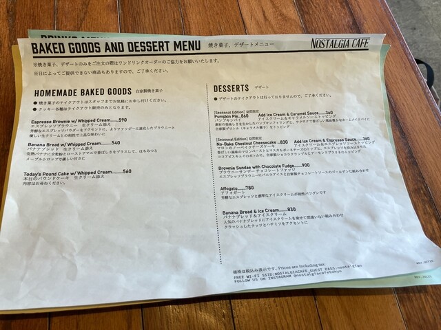 パンプキンパイ、マロンのノーベイクチーズケーキを注文しました。