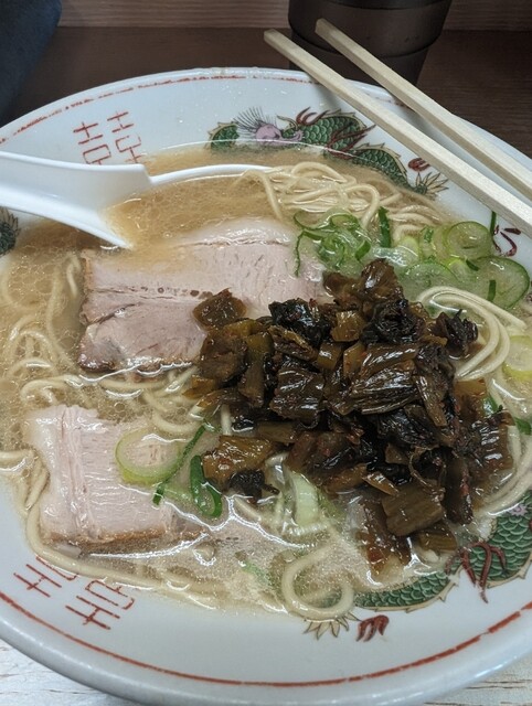 ラーメンはやっぱり旨い 今日は替玉しないから辛子高菜もすぐ投入