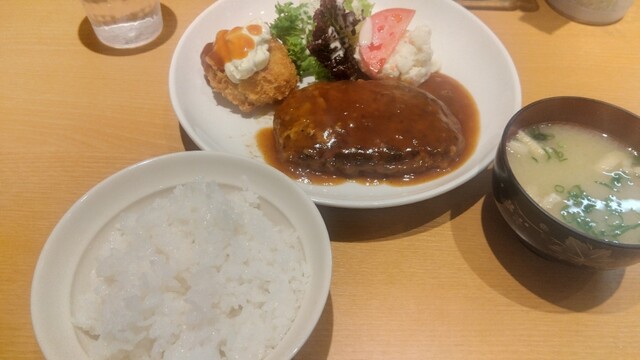 ハンバーグ定食 650円 カニクリームコロッケ(200円)追加