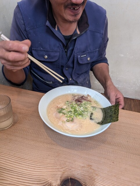 3杯目のラーメンを置くときにスープをチョイこぼし