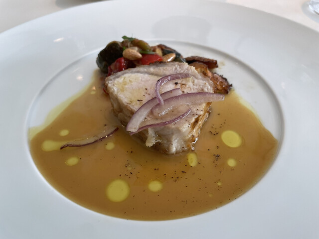 西梅田の安田生命ビルの上、白く広い空間での食事です パスタが2種類付いて、かなりしっかりめの量があります コーンスープからはじまり、前菜、パスタ、サカナ、お肉と出てきますが、パスタに入ってるものもメインに出てきてもおかしくない素材 出てきたお皿は一瞬、なにかわからないし、なんかワクワクするお店です