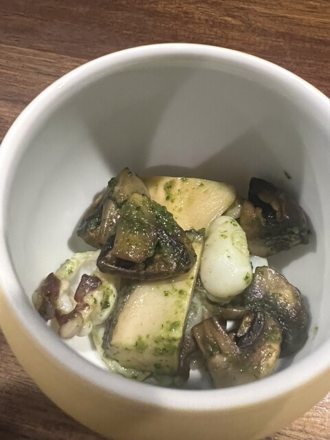 (鬼海老、猛者海老、しま海老)の味くらべ、とそら豆。私とツレで好みが分かれました。私は猛者海老が一番。ツレはシマ海老の旨さにやられました。