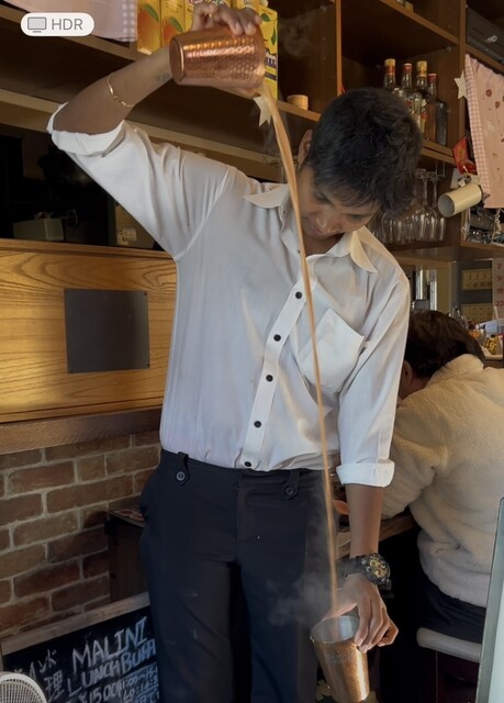 食後、熱々のチャイをサーブしてもらったのですが、高い位置からジョボジョボと注ぐ姿はエンターテイメントでした!