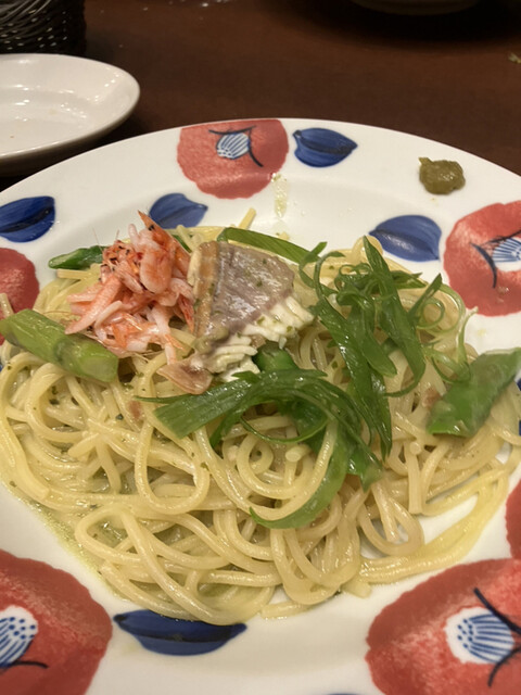 アスパラガスと九条ネギのシャキシャキ感と香りのいい香ばしい桜エビ、食感も楽しめました。