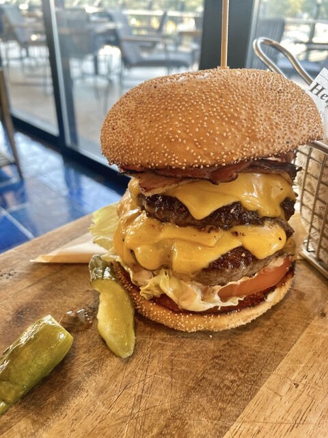 景色を見ながら美味しいハンバーガーとサーモンの食べ比べをシェアして大満足╰(*´︶`*)╯♡