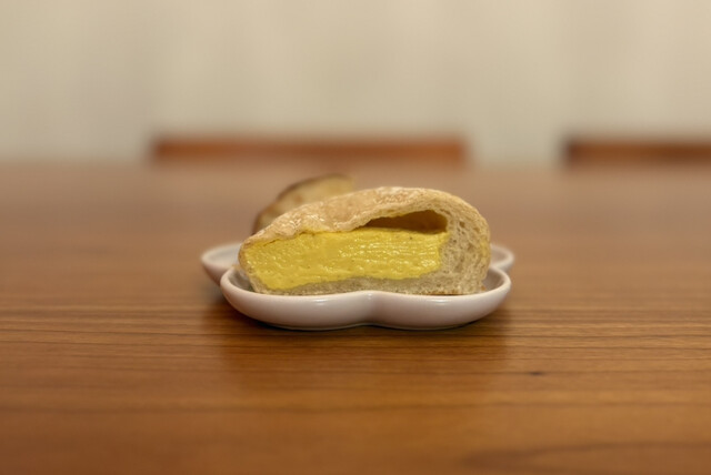 油脂感のないもちもちなパン生地(穀物っぽい香り?も感じられて好き)、バニラビーンズがたっぷり入っていて卵本来の味を楽しめる優しい甘さのクリーム(ぽってり固めなところも好き)。何もかもが好きポイントしかないパンです。