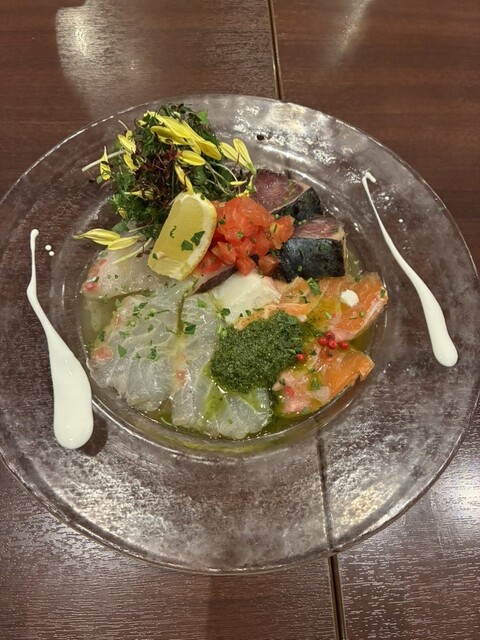 前菜 鮮魚のカルパッチョ5種盛り(真鯛、サーモン、真蛸、鰹、縞鯵)