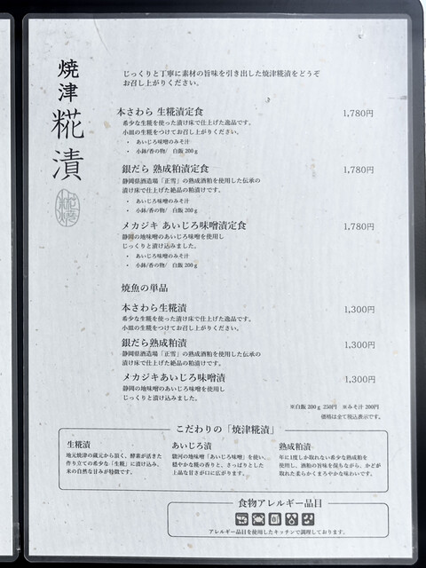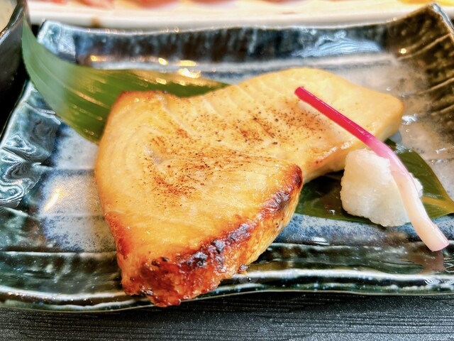 そしてメカジキのあいじろ味噌漬け、これがまた最高に美味かった。あいじろ味噌は駿河地方の地味噌です。味噌漬けなんだけど西京漬のような味噌っぽい感じは少なくて、どちらかというと糀漬けに近い味です。穏やかな糀の香りとさっぱりめの上品な甘さがたまりません。脂の乗った腹身側と弾力があって肉々しい背中側はまるで別モノで、どちらも美味い。白ご飯がどんどん進みます♫