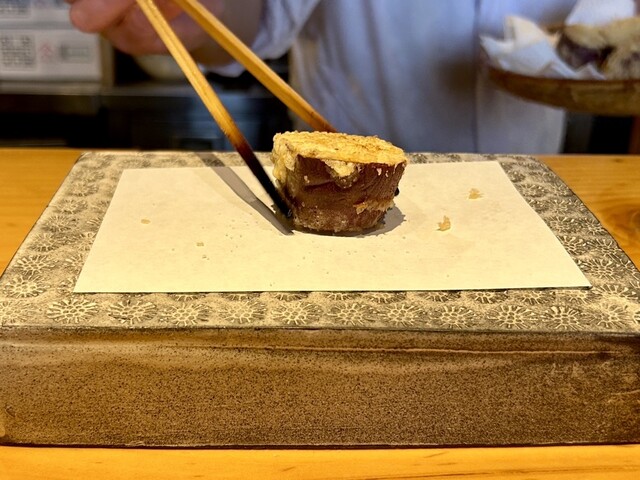 席はカウンターかテーブルか聞かれますが、事前にオ◯ロパさんにアドバイスを頂いて、一品ずつ頂けるカウンターにしました^o^Thanks ♪