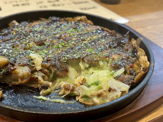 なこき師のレビューでも紹介された、具に大貝(大アサリ、ウチムラサキガイ)を使った貝のお出汁あふれるお好み焼きです。食べてみたい!