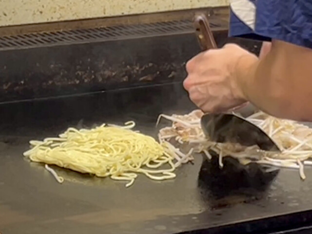 店主、次にそばめしを焼き始めます。
