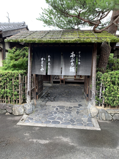 今日のお昼は京都のかざりやさんのあぶり餅を食べに行きました^ - ^最初はテイクアウトで言ったら、3人前からお持ち帰りになると言われ、でも2人前からもしてくれると言ってくれて、お茶も出してくれて座って待ってたのですが、食べてる方のを見たらここで食べたくなり、テイクアウトやめて、店内で食べて帰りました。とても白味噌の甘さに香ばしく焼き上がったお餅が絡んで口の中でとろける美味しさでした。やみつきにになるくらい何本も食べれるくらい本当に美味しかったです。一人前11本で600円でしたが、追加で注文したらおまけで2本付けてくれました☺️とても優しい店員さんでほっこりできるお店だったのでまた食べに行きたいと思います♪店内で食べると1時間無料の駐車場券をくれるので皆さんも一度食べて見て下さいね❣️定休日は水曜日です。