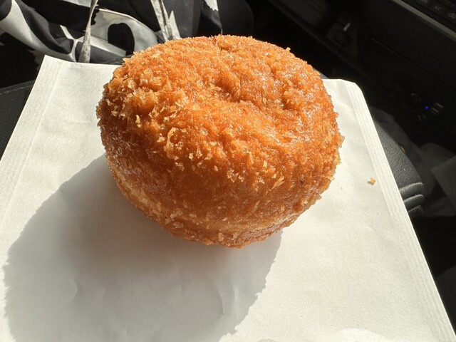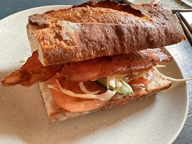 あと、ベーコンとオリーブが丸まま、中に入ったパン、バリバリおいしかったです。名前わからなかったので、ごめんなさい