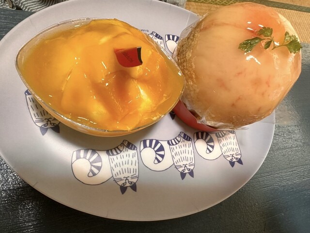 ちなみにこちらの桃のケーキなんですが、赤い色が強い桃はすごくジューシーで、ほんとに桃の美味しさを味わえます。白っぽい方は歯応えがあり、あっさりした感じでこちらも美味しいです。