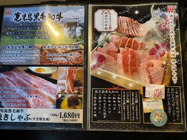 ・焼肉玉手箱2人前 (和牛ロース、和牛バラ、和牛カルビ、和牛すだれ焼き、厚切りタン、焼き野菜4種)7678円