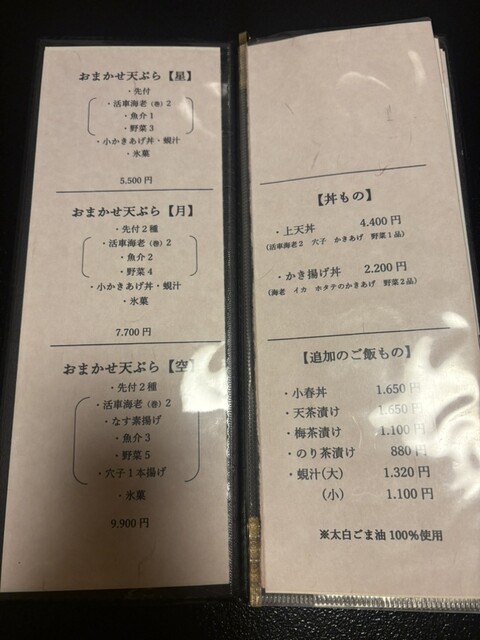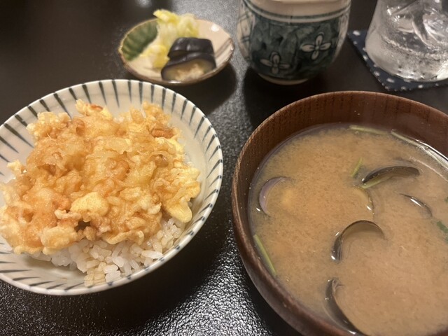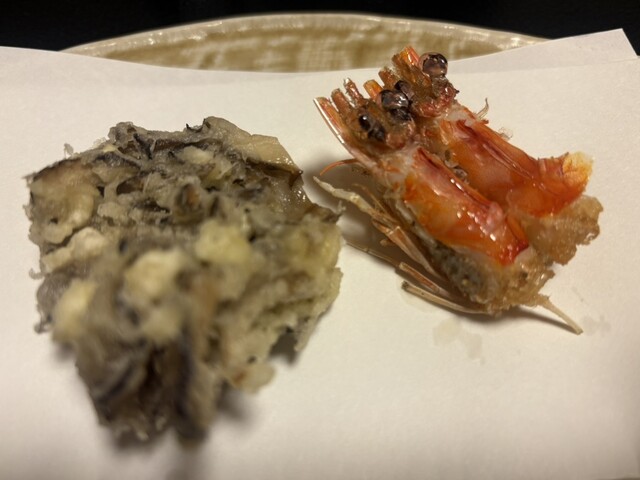 そして、天ぷら。活車海老の頭、舞茸、どじょう、インゲン、活車海老、蓮根、牡蠣の海苔巻き、白子、アスパラ、車エビ、カキ、蕪(中に柚子味噌)、キスの骨せんべい、キス、春菊、茄子の素揚げ…どれも素材を最高に活かした技術で揚げられていて、香ばしく、中はふっくらしています。最後の天丼としじみ汁まで、自然に食べられるほど、胃にも優しい味わいです。そして手作り抹茶のアイス。沁みます。