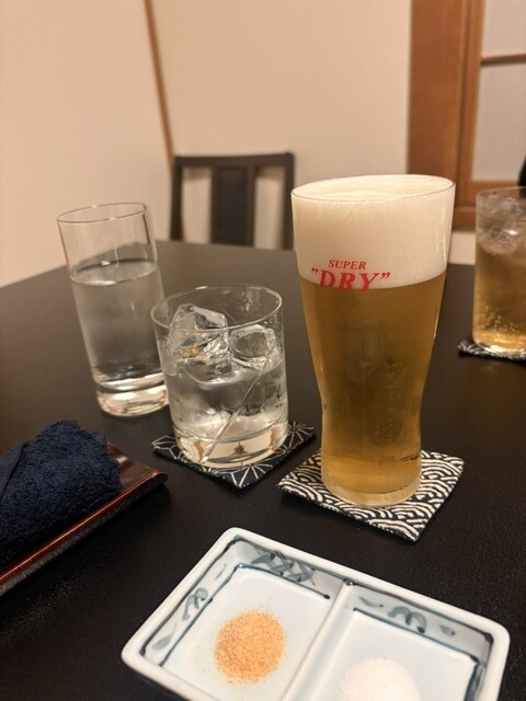 ドリンクも楽しめます。生ビールに吉四六、ジンジャエールの辛口・甘口、ソムリエの資格をお持ちの娘さんセレクトのメルロー赤ワイン。料理に合わせたラインナップも素晴らしいです。