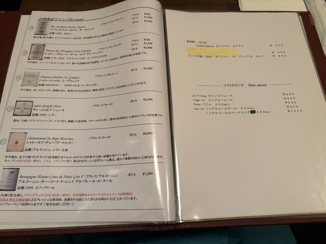親戚に連れてきてもらいました。シェ・レノンさん。セブンイレブンの斜め後ろに素敵な建物が。ウワーッ素敵!多分地元の方にも愛されているんでしょうね。予約で満席です。ご夫婦で経営されているようで、前もって注文をしておきます。前菜は「小エビとお野菜のピクルス」、メインは「子羊背肉の香草焼き」、デザートは「ほろ苦いガトーショコラ」にしました。ドリンクはモルツの瓶ビールと白ワイン。前もって注文しているので、いい意味ですぐにもってきていただけます。前菜はボリューム満点!味は薄い?と感じるようなお味。でも食べているうちに野菜の甘みとエビの甘みがマッチして、とても美味しく感じ始めました。パンがきますがこれまた美味しい。メインの子羊は、すごいボリューム。味は絶品!頼んだ赤ワインとマッチします。ちなみにワインは自然派ワインです。デザートも濃厚!もう、大満足でした。パリで食べたフレンチを思い出しました。家族が食べていたコンフィを食べてとても懐かしく感じました。個人的には超お勧めしますが、まあ合う合わないがありますので、その辺はご勘弁を。駐車場ありです。家族が食べていたものも掲載させていただきます。