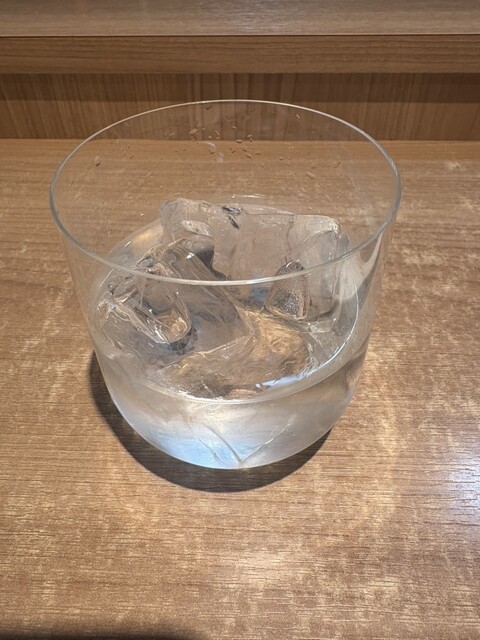 ますばご夫婦?の醸し出す雰囲気。ほんと謙虚でホッとします。来てよかった〜と思わせてくれます。注文は頼んでおいた¥4.000円のコース。飲み物は一番搾りの生、富乃宝山のロック、赤ワイン、白ワイン、ウーロン茶。見ていて感動しましたが奥さんが、コップを本当に丁寧に丁寧に洗われています。だからグラスはピカピカ。ビールの泡切れも素晴らしく、ワインの雫も素晴らしい!