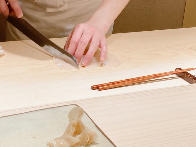 目の前で職人さんが都度ネタを切り、一つ一つ丁寧に握ってくれます。