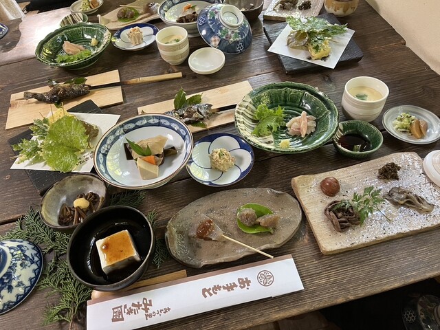 素材から調味料まで拘った山菜料理が食べれます。焼き魚に天麩羅、美味しい料理は勿論、山の中にあるので景色だって最高!