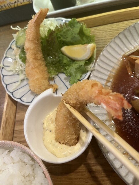 鯖の甘酢煮に…Wセットのエビフライを注文!