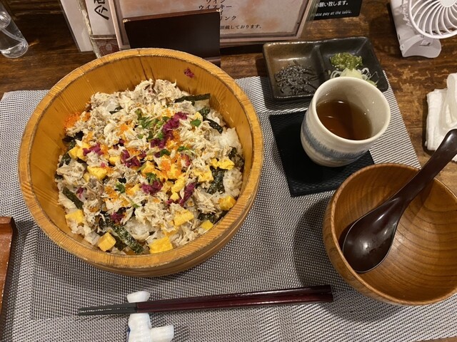 三越前で島根料理、焼き鯖がいな丼は最高!