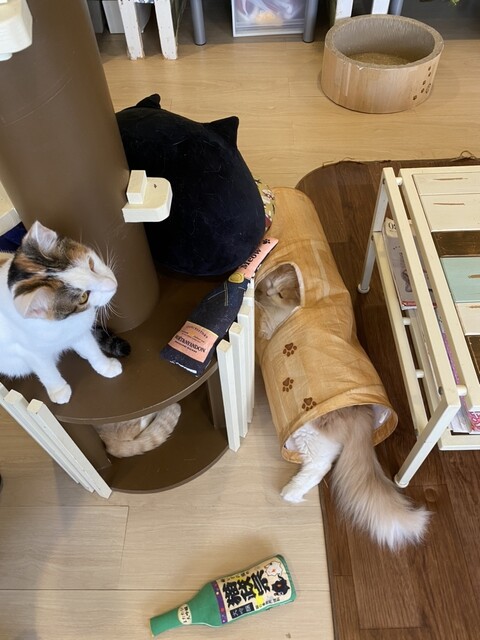 お部屋暗くなっていて、大人ねこ達が、キラキラの首輪つけていました。
