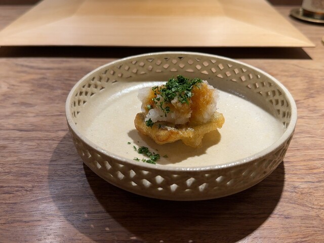 さていよいよお食事スタートですが、波濤ではおつまみから握りの流れで、1品めは寒いのでということで、氷見のメバルのお椀からスタートでした。
