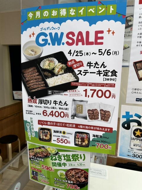こちらは直売店の中にあり、リーズナブルな価格で牛タンを楽しめます。