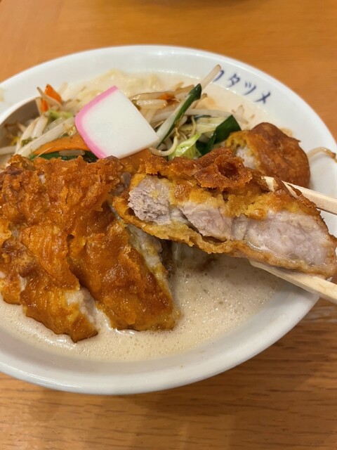 タンメンに豚の唐揚げをのせてって合うのかな??って思いましたが美味しい。