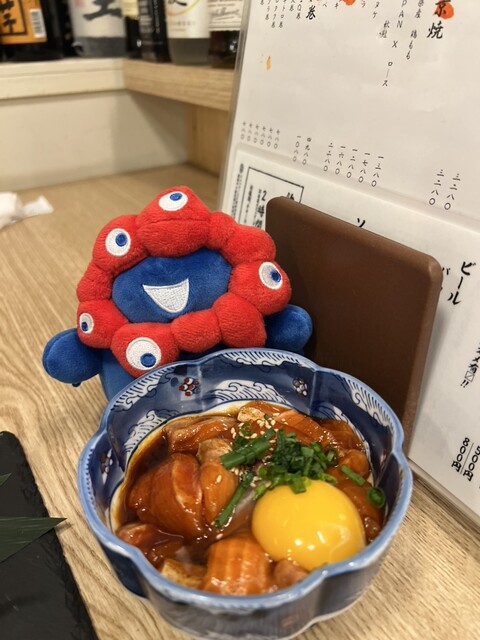 サーモンユッケは濃いめのタレに卵黄を崩すと、一気にまろやかになって箸が止まりません。