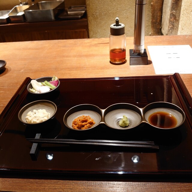 調味料(タルタルソース、モホソース、わさび、醤油)