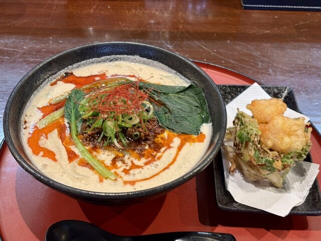 【濃厚坦々うどん】&【パクチーと海老のかき揚げ】