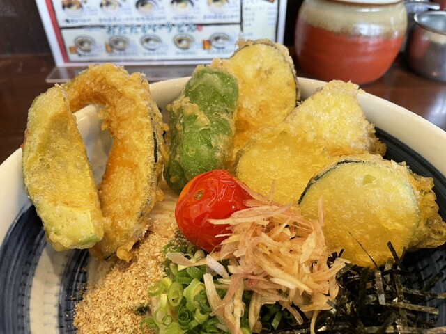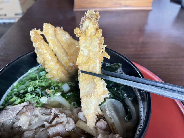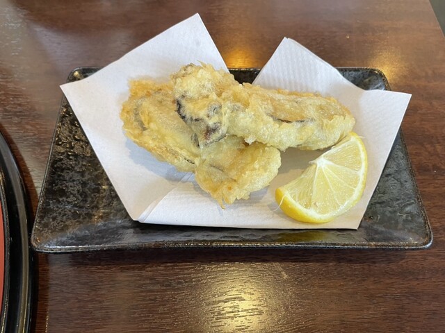 鍋焼きうどんと三陸産の牡蠣の天ぷら