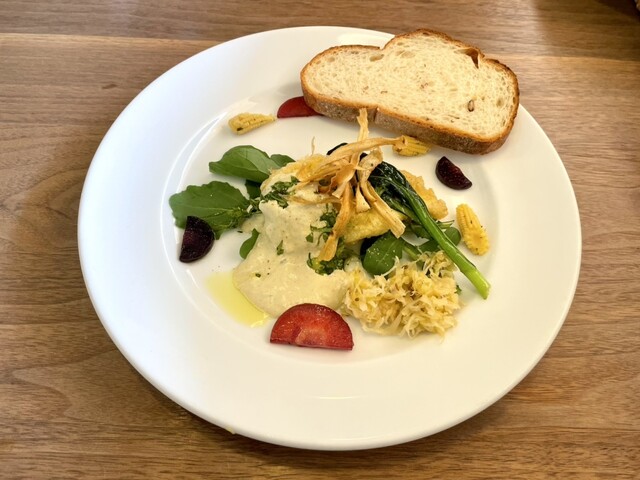 フリットは、ふっくらとした身が美味しい。衣の食感も良いです。付け合わせに県産の野菜を使っているのも好感度が高くなります。