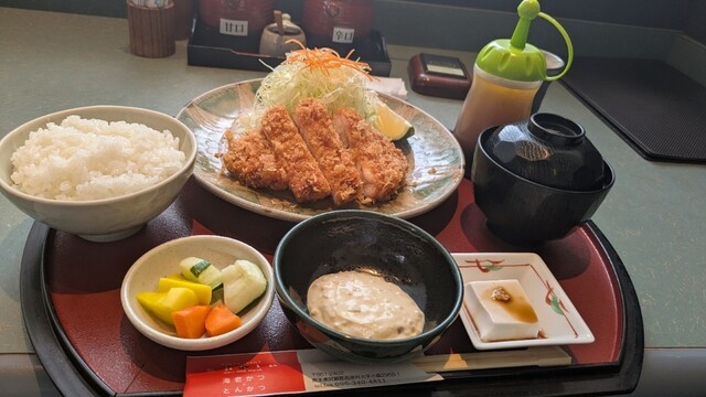 名物は、やはりエビカツです。揚げたてサクサクは、もちろんの事、エビカツの厚さでプリプリしています。味は、塩・カレー粉・タルタルソースで、味変することも。また、足が変わっていくのを胆嚢出来るのは、嬉しいですよね。(←個人的意見)その他に、メンチカツもトンカツも、美味しいですよ。ご飯にキャベツは、食べ放題です。ご飯も美味しい、キャベツは、シャキシャキで、お味噌は、赤だしのお味噌。ピーナッツ豆腐も、美味しいですよ。定員さんのサービスも良いです。お腹いっぱいの後は、そのままドライブして、道の駅・萌の里や山田さん家のジャージーソフトクリームに動物と触れ合ってみては、いかがですか?