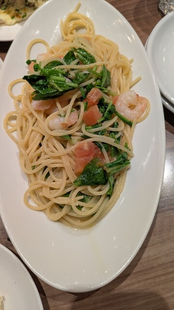 ランチでコース料理もあったが、選べるパスタセットと・選べるピッツアセットして、二人で分け合う事にしました。ピッツアのサイズも二人で分けると、定員さんに言うと、カットしてきてくれて、サービスに満足しました。←(個人的意見です)後は、シャキシャキサラダが付き、お腹も満たされて、良かったです。私達が行った時は、ジャズ演奏していなかったのですが、ジャズの生演奏もあるみたいです。隣には、俺のフレンチが有りました。次回は、言うまでもない、友人とフレンチに決定だね。と話をして帰りました。
