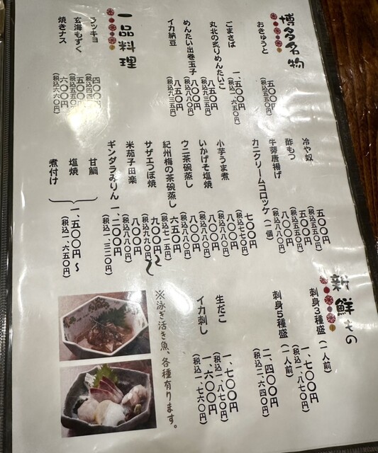 ごまさば、カワハギ、サザエ、アワビ…などの新鮮な海鮮をいただきながらのビール、焼酎(三岳)ソーダ割りがより美味い!