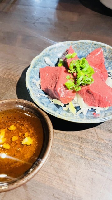お次は肉刺しのハツ刺し。ごま油のタレが美味しいし、サクッとした歯応えも◯