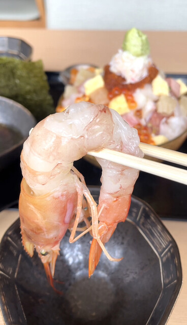 snsで見かけていたあのエビがそそり立つ海鮮丼。その名も宝石丼エビタワー(松)いくらもウニも入っている贅沢丼を食べました!