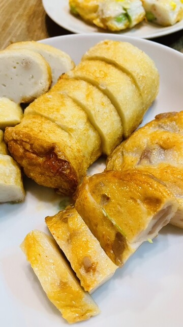 パンロールとピリ辛蓮根揚げ、フワトロネギ天
